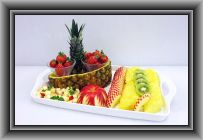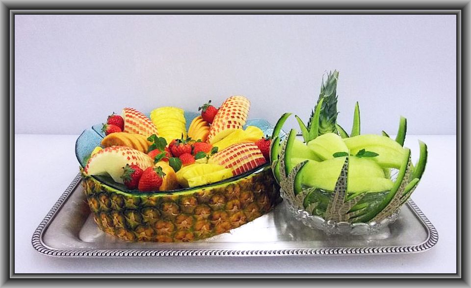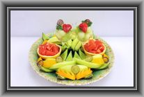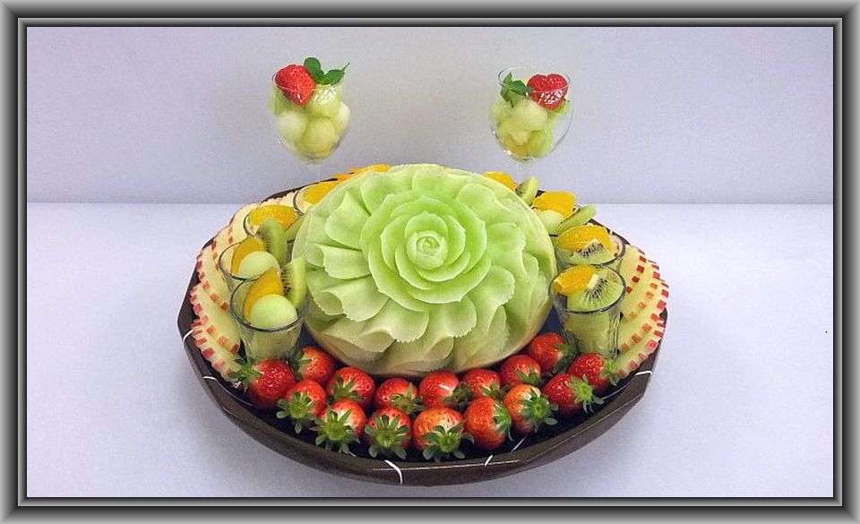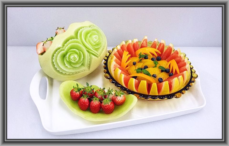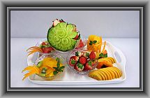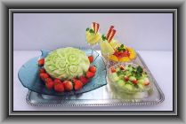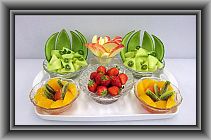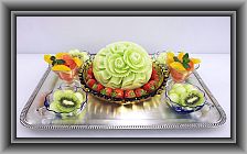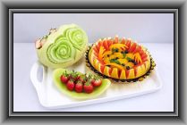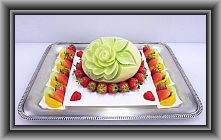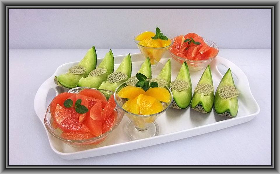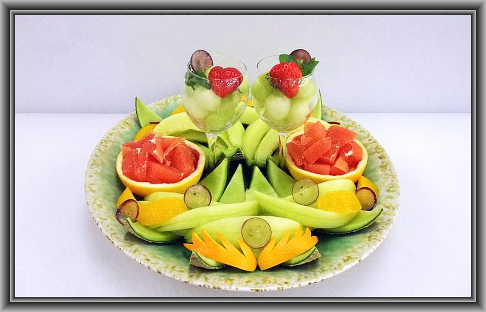 ハネデューメロン×1、苺×1パック、キウイ×1、オレンジ×1、グレープF×1、リンゴ×1、ミント(原価 1500円)