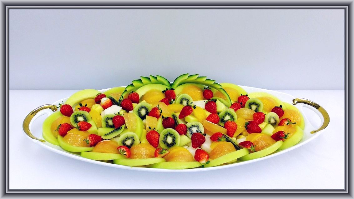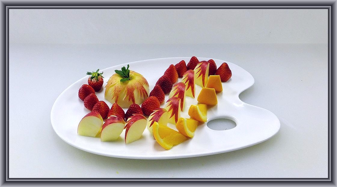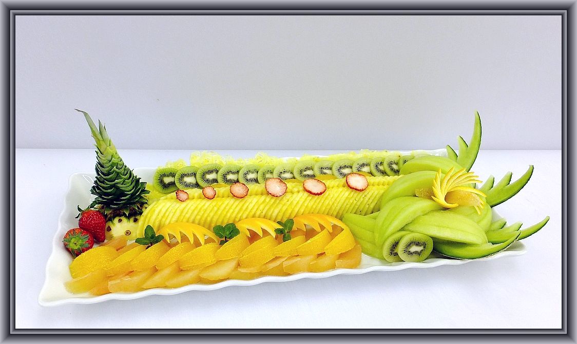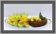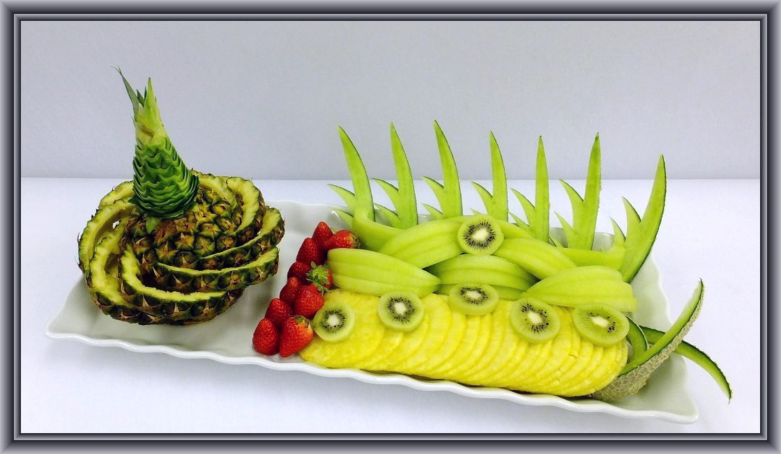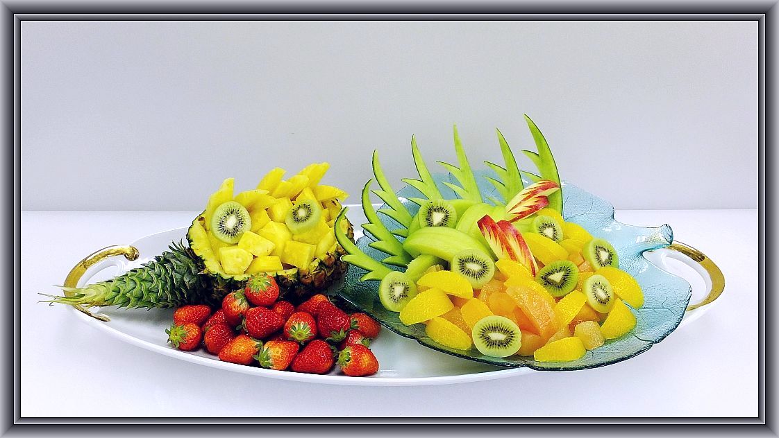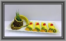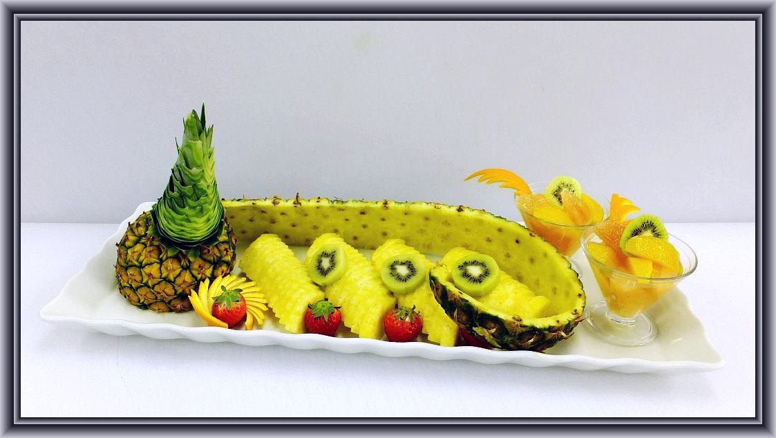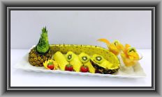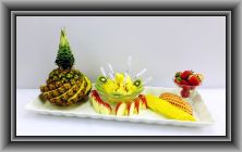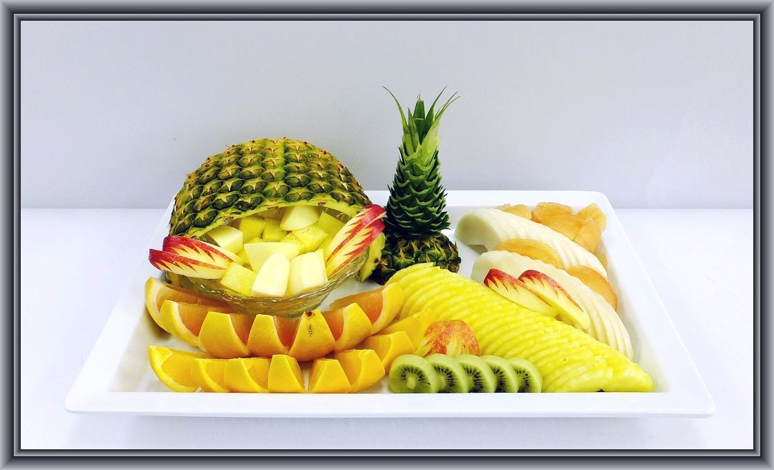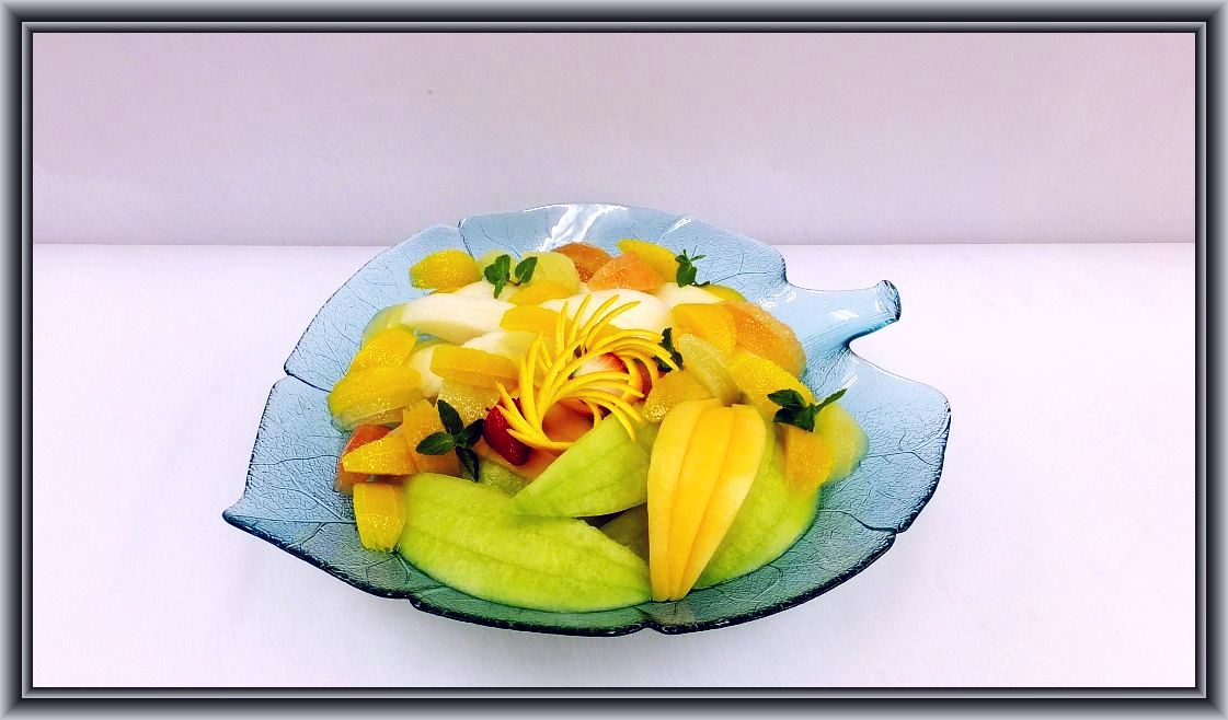 パイン2本、グレープフルーツ7個、オレンジ5個、梨3個、リンゴ1個、キウイ2個、イチゴ1パック、ミントを使ってます